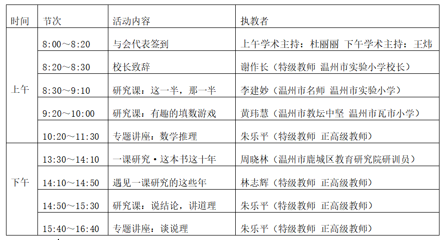 在 温州市实验小学桃花岛校区阶梯教室举行活动,时间 1 天。